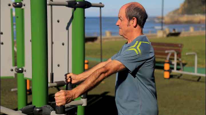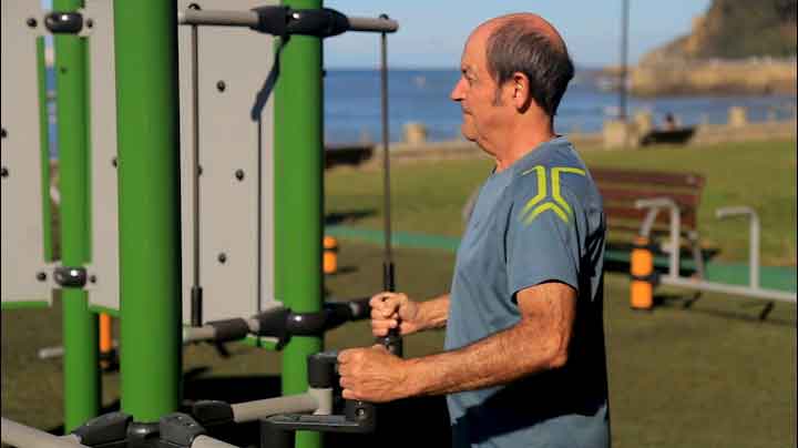Saisir une manivelle dans chaque main, les faire tourner dans un sens puis dans l’autre. L’exercice peut être réalisé d’un côté puis de l’autre, ou des deux côtés simultanément afin de développer la coordination des mouvements.