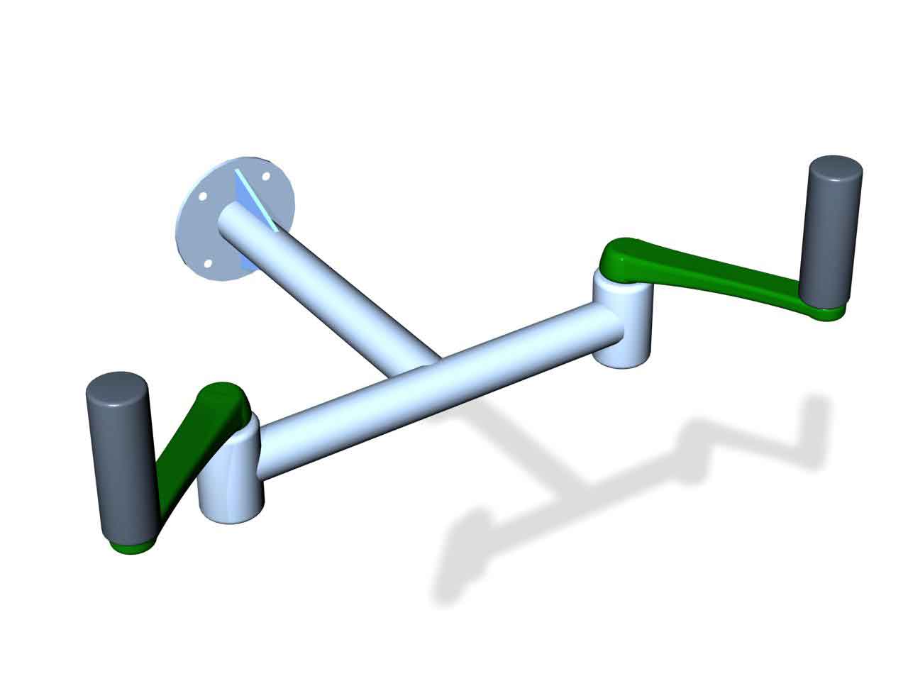 Saisir une manivelle dans chaque main, les faire tourner dans un sens puis dans l’autre. L’exercice peut être réalisé d’un côté puis de l’autre, ou des deux côtés simultanément afin de développer la coordination des mouvements.