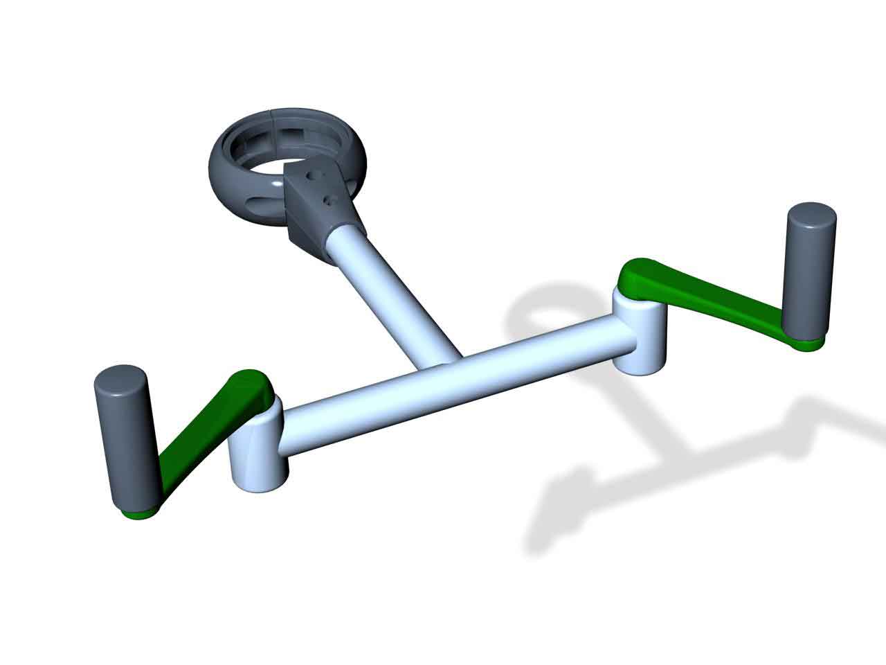 Saisir une manivelle dans chaque main, les faire tourner dans un sens puis dans l’autre. L’exercice peut être réalisé d’un côté puis de l’autre, ou des deux côtés simultanément afin de développer la coordination des mouvements.